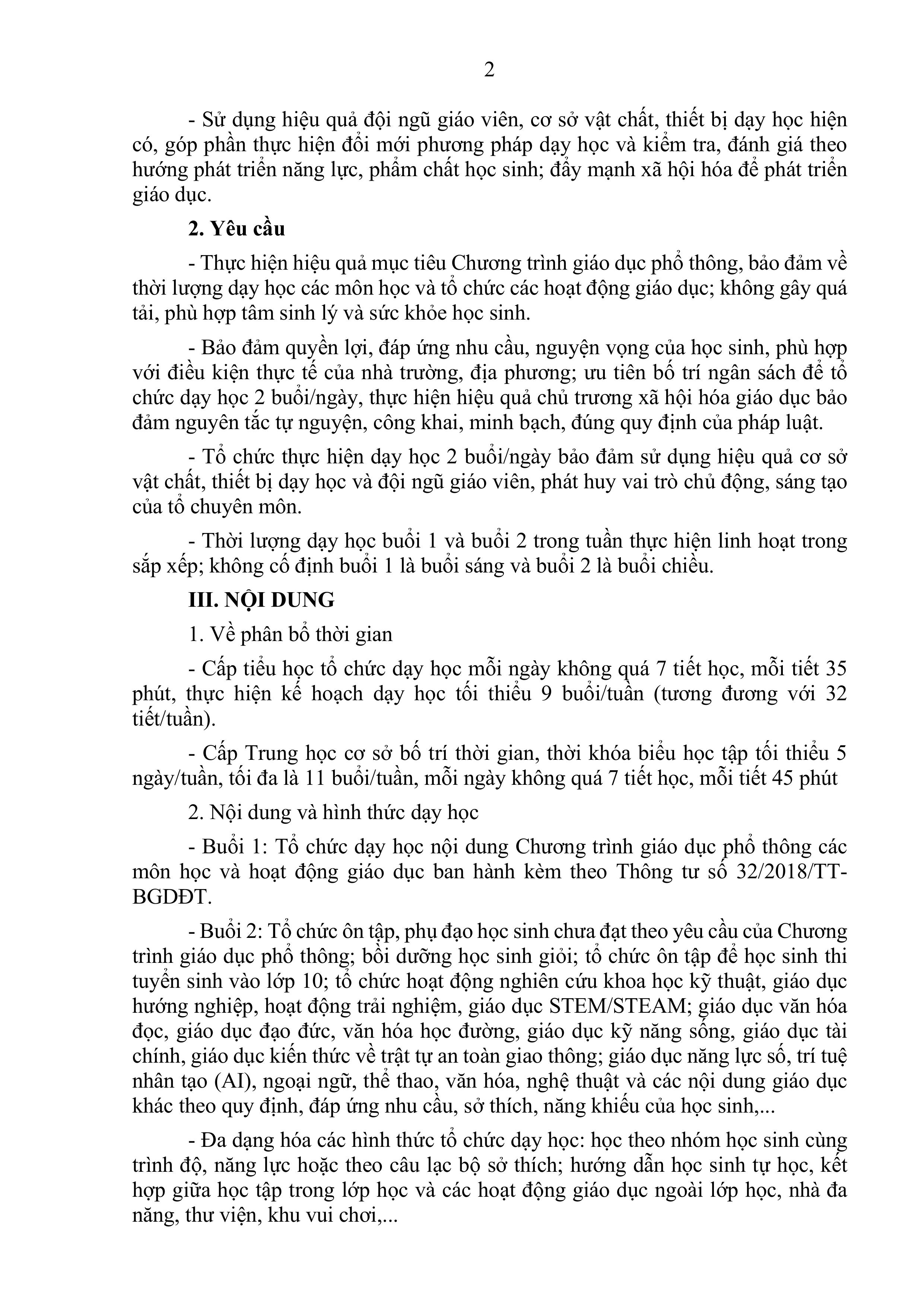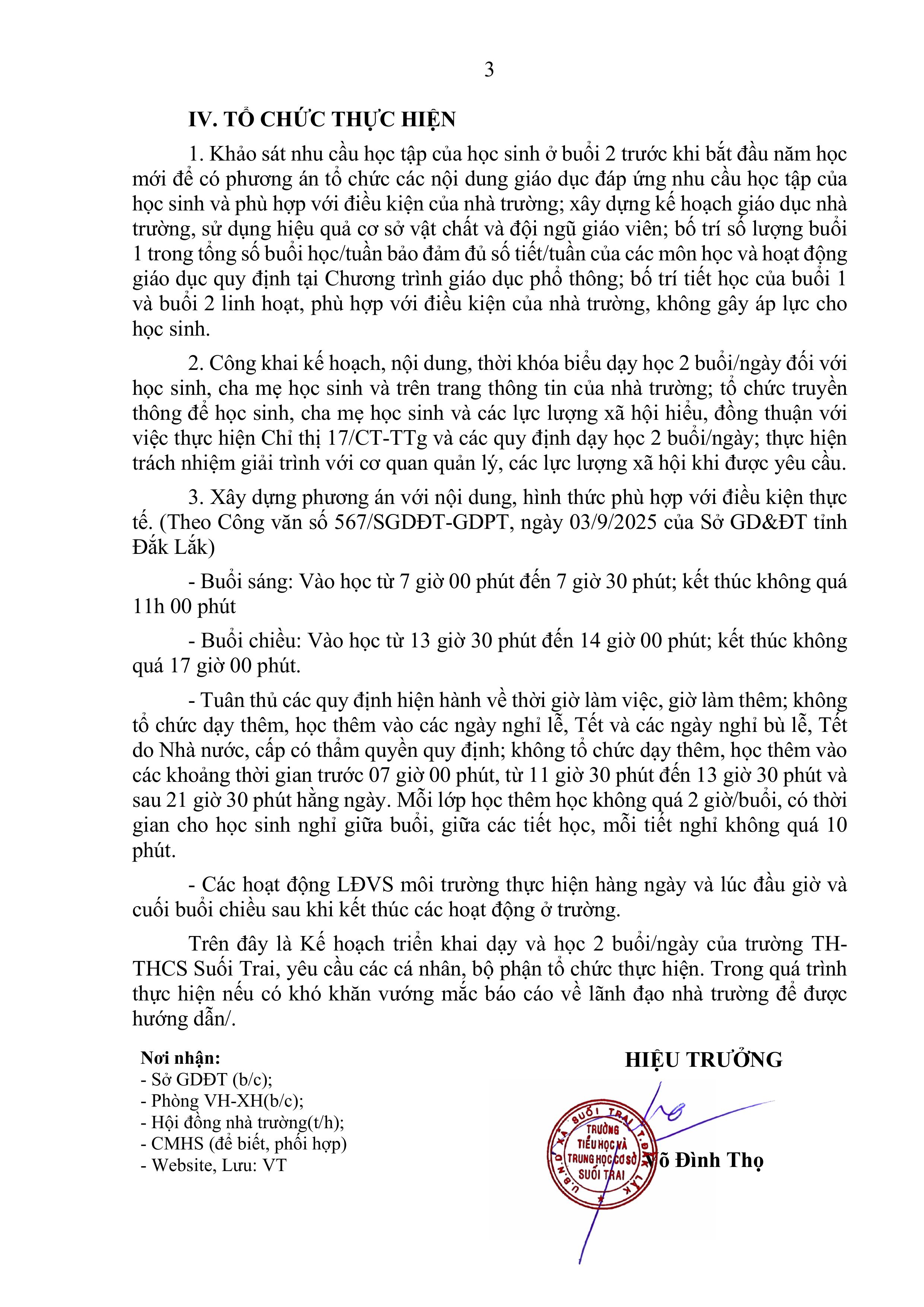KẾ HOẠCH Tổ chức dạy học 2 buổi/ngày năm học 2025-2026